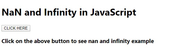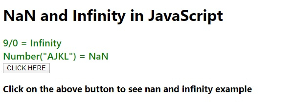 以下是使用 JavaScript 實現 NaN 和 Infinity 的程式碼 −
