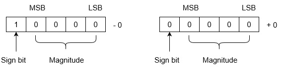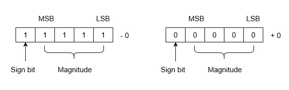 注意該系統的一個缺點是 0 有兩種不同的表示:-0(例如,在五位暫存器中為 1 0000)和 +0(例如,在五位暫存器中為 0 0000)。