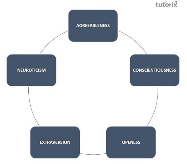 五因素模型用於評估五個主要領域的人格,稱為OCEAN,其中“O”代表開放性;具有這種特質的人樂於接受新體驗,通常被稱為具有挑戰性的人格,而相反的是那些不容易接受生活變化的人。“C”代表盡責性;這個領域的人認真對待他們的職責和責任,而相反的是那些總是遲到的人。“E”代表外向性;具有這種特質的人喜歡與新人在社交環境中交往,並能加強人際關係,而害羞的人則相反。“A”代表宜人性;這種人格的人具有利他心、同情心,並與每個人合作,而相反的人則想控制他們周圍的一切。“N”代表神經質;有些人具有這種特質,他們傾向於總是接受負面情緒,忽略生活中所有積極因素,而與之相反的人則情緒穩定。