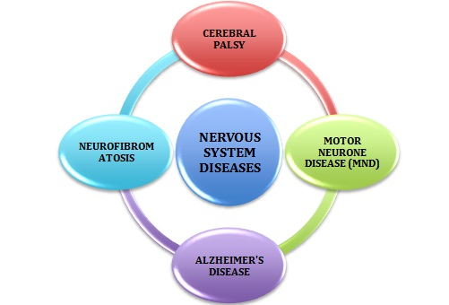 神經系統充當人體的指揮中心,其基本單位是神經元或神經細胞。受損的神經元會影響身體運動、新陳代謝和血液迴圈,並影響個體的感官、思維和言語。這個特定的網路允許大腦的不同部位感知、與他人交談並控制其他身體功能,如思考、情緒、行為和運動。神經系統疾病包括運動神經元疾病、貝爾麻痺、帕金森病、阿爾茨海默病、神經纖維瘤病和腦癱。