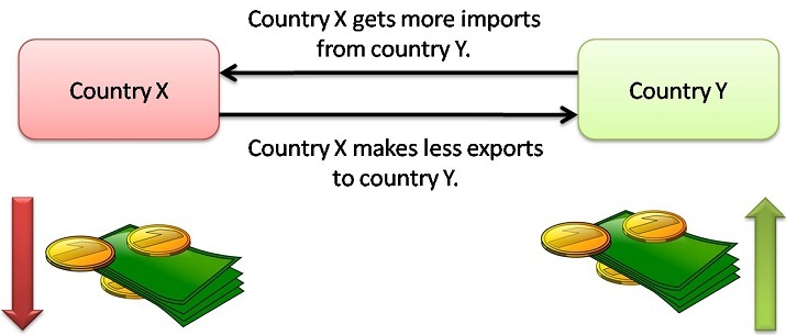 製成品的價格由一個國家的本地貨幣決定。因此,如果一個國家的貨幣價值低於另一個國家,那麼前者可能以較低的價值生產商品,並以較低的價格出售給其他國家。因此,前者的淨出口價值將高於後者。
