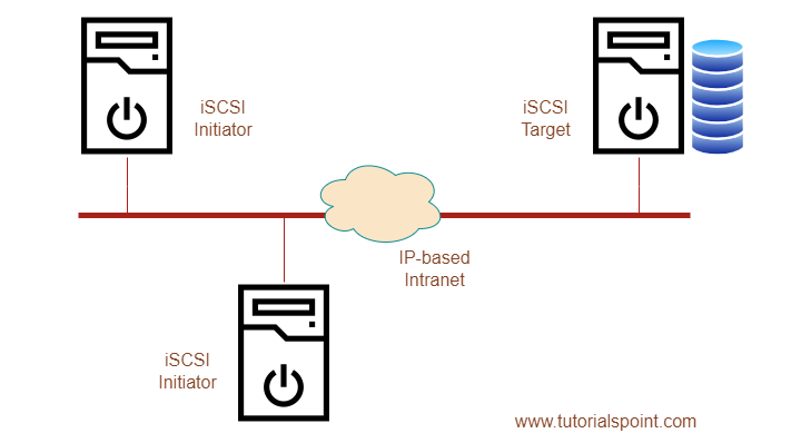 iSCSI 透過內聯網傳輸資料並在遠端管理儲存,並且可以在 LAN、WAN 或 Internet 上執行。iSCSI 裝置不需要了解光纖通道技術。iSCSI 是雙向的。iSCSI 是透過 IP 網路傳輸儲存資料的兩種主要方法之一,另一種方法是 FCIP。FCIP 只能與光纖通道技術結合使用。