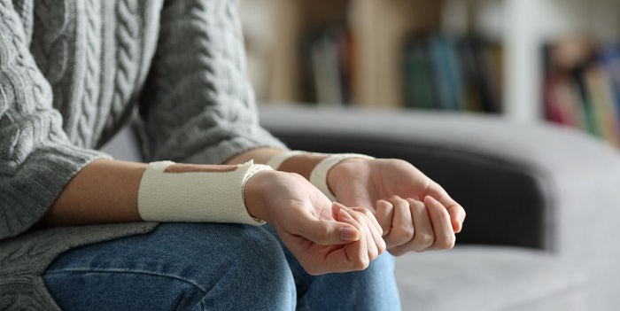 不明原因或反覆出現的傷痕 − 可見且反覆出現的傷痕,例如割傷、燒傷、抓傷、瘀傷或疤痕,尤其是有規律的圖案或出現在身體的特定部位(例如,手腕、手臂、大腿)。他們可能會對傷痕給出含糊不清或相互矛盾的解釋。