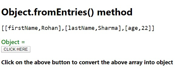 JavaScript 中的 Object.fromEntries() 方法用於將諸如陣列、對映這樣具有鍵值對的可迭代物件轉換為物件。