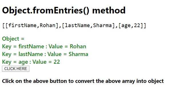 let arr = [['firstName','Rohan'],['lastName','Sharma'],['age',22]];