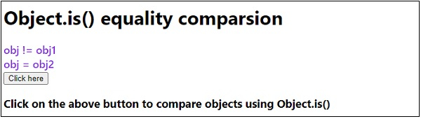 <h3>Click on the above button to compare objects using Object.is()</h3>