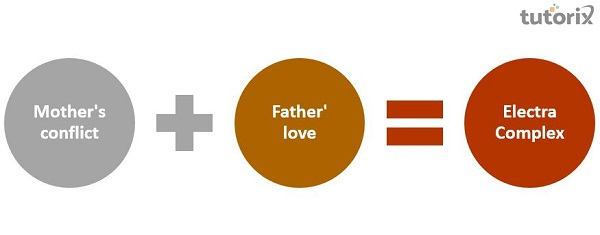 女兒對父親的愛、對母親的怨恨以及對母親搶走她陰莖的憎恨是俄狄浦斯情結的女性等價物。卡爾·古斯塔夫·榮格在1913年提出了“埃勒克特拉情結”一詞,用來描述俄狄浦斯情結在年輕女孩中的表現形式,但西格蒙德·弗洛伊德對此嗤之以鼻。最初指的是“兒子對母親的性渴望”,俄狄浦斯情結,根據弗洛伊德的說法,是男女雙方對父母的渴望,男孩和女孩對這種情結有不同的體驗——經歷過閹割焦慮的男孩和經歷過陰莖羨慕的女孩。弗洛伊德聲稱,大約在這個時候,男孩和女孩開始痴迷於陰莖。根據弗洛伊德的說法,“女孩痴迷於她們缺乏陰莖,因此,她們的陰蒂。根據弗洛伊德的說法,女孩首先與母親建立情感聯絡,然後意識到自己缺乏陰莖。因此,她感到母親“閹割”了她,弗洛伊德稱之為“陰莖羨慕”。因此,她與父親走得更近。”