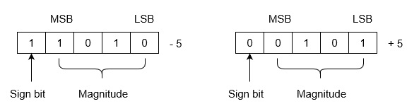 示例:假設我們使用 5 位暫存器。-5 和 +5 的表示如下