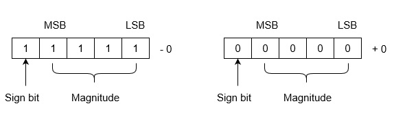 注意該系統的一個缺點是 0 有兩種不同的表示,一種是 -0(例如,在 5 位暫存器中為 1 1111),另一種是 +0(例如,在 5 位暫存器中為 0 0000)。