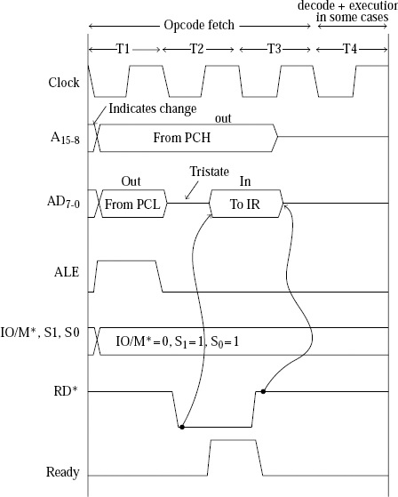 除了地址資訊外,控制單元在**T1**期間還會啟用如下所示的狀態訊號。