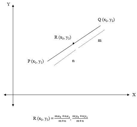 $$\mathrm{R(x_{3}\:,\:y_{3})\:=\:(\frac{mx_{2}\:+\:nx_{1}}{m\:+\:n}\:,\:\frac{my_{2}\:+\:ny_{1}}{m\:+\:n})}$$