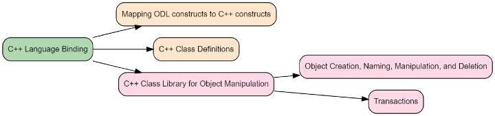 ODMG 標準中的 C++ 語言繫結提供了一組用於物件建立、命名、操作和刪除的結構和功能。
