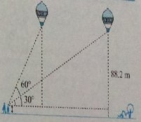 一個1.2米高的女孩發現一個氣球在水平線上隨風移動,氣球距離地面88.2米。在某一時刻,女孩眼睛到氣球的仰角是60°。一段時間後,仰角減小到30°。