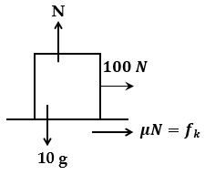 一個木塊以\( 10 \mathrm{~m} / \mathrm{s} \)的速度運動,並受到一個大小為$100N$的力,此外摩擦力也作用在木塊上。求木塊的加速度。