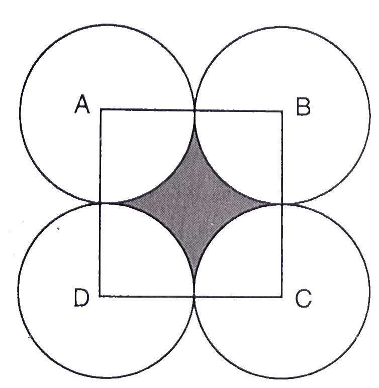 陰影區域的面積 = 正方形的面積 - 正方形內四個四分之一圓的面積