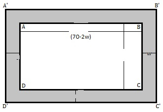 ABCD 的面積 = (70-2w) $\times (40-2w)$ m2