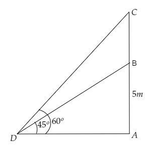 $\mathrm{AB}=5 \mathrm{~m}, \angle \mathrm{CDA}=60^{\circ}, \angle \mathrm{BDA}=45^{\circ}$