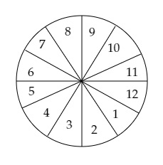 - 一個機會遊戲包括旋轉一個箭頭,該箭頭等可能地指向以下數字之一 $1,\ 2,\ 3……12$,然後求它指向奇數的機率。