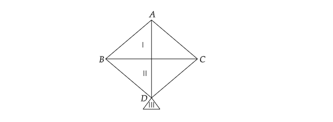 一個風箏由一個對角線為 32 釐米的正方形和一個底邊為 8 釐米、兩腰各為 6 釐米的等腰三角形組成,如圖 12.17 所示,並使用三種不同的顏色。每種顏色的紙張用量是多少?圖 (12.16)