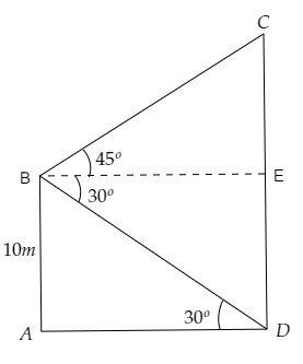 $\angle ADB =30^{o}, AB=10\ m$ 且 $\angle CBE=45^{o}$