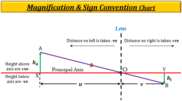 放大率的正值 $(+)$ 表示 虛像 和 正立像,因為虛像和正立像形成在主軸上方,主軸上方取正值 $(+)$。
