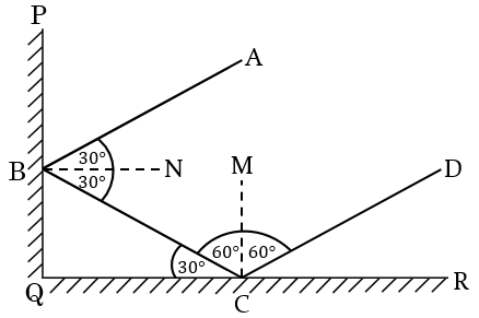 $\angle MCB=\angle MCD=60°$ $(\angle MCB=平面鏡QR的反射角,並且入射角=反射角)$