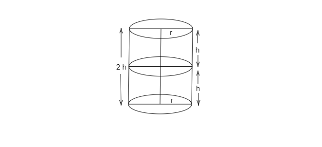 已知:一個半徑為 $( r)$,高為 $( h)$ 的實心圓柱體放在另一個相同高度和半徑的圓柱體上。