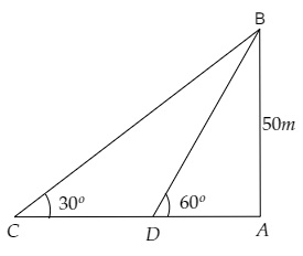 $\mathrm{AB}=50 \mathrm{~m}, \angle \mathrm{BCA}=30^{\circ}, \angle \mathrm{BDA}=60^{\circ}$
