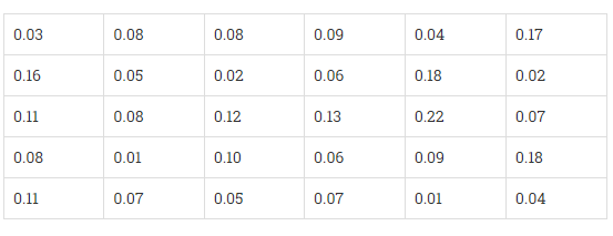 - 在練習 14.2 的第 5 題中,你被要求準備一個關於某城市 30 天空氣中二氧化硫濃度(百萬分率)的頻數分佈表。使用此表,求這 30 天中二氧化硫濃度在\( 0.12-0.16 \) 區間內的機率。