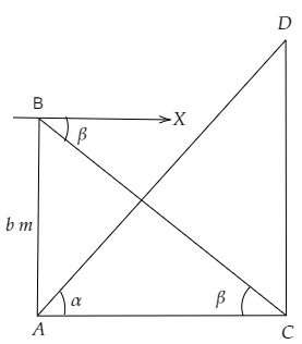 $AB = b\ 米, \angle \mathrm{DAC}=\alpha \mathrm{BCA}=\beta$