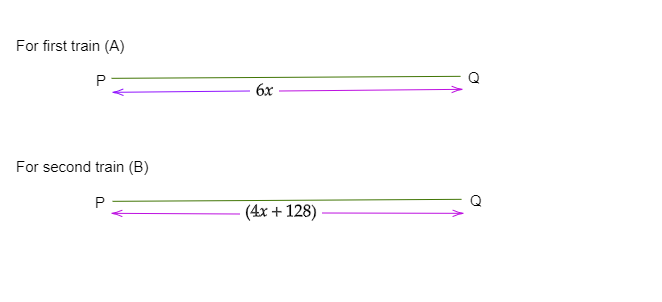 第一列火車$( A)$行駛距離$=PQ=速度\times 時間=x\times 6=6x$