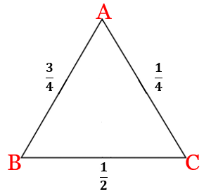 三角形地塊的尺寸為 $\frac{3}{4}$米、$\frac{1}{4}$米和$\frac{1}{2}$米。