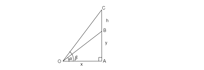 $tan\beta =\frac{y+h}{x}$ $(y+h)=CA=AB+BC,\ 設 OA=x$