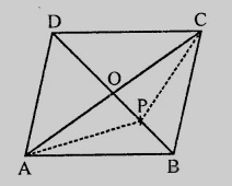 平行四邊形$ABCD$的對角線交於點$O$。如果$P$是$BO$上的任意一點,證明$ar(\triangle ADO) = ar(\triangle CDO)$。