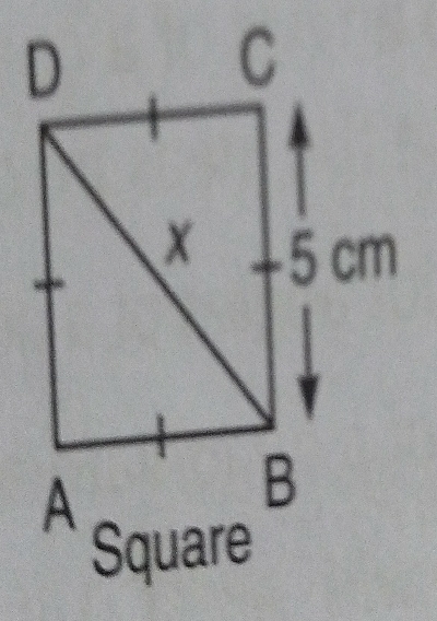 正方形$ABCD$中,$BC=5\ cm$。求$x$的值。