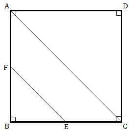 $ABCD$ is a square. $F$ is the mid-point of $AB$. $BE$ is one third of $BC$. If the area of $∆\ FBE\ =\ 108\ cm^2$, find the length of $AC$.
