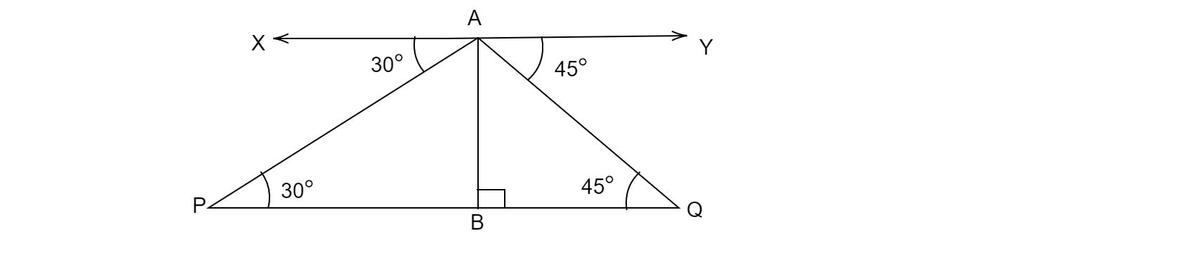 $\angle XAP\ =\angle APB=30^{o} \&\ \angle YAQ=\angle AQB=45^{o}$