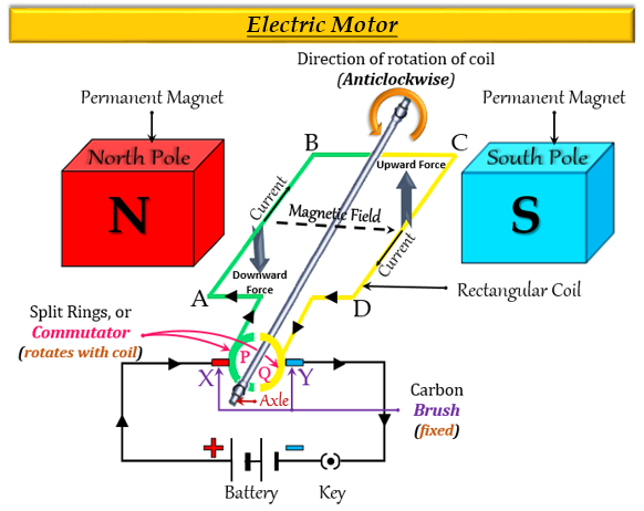 (c) 電動機是一種其工作原理依賴於作用在放置在磁場中的載流線圈上的力的裝置。