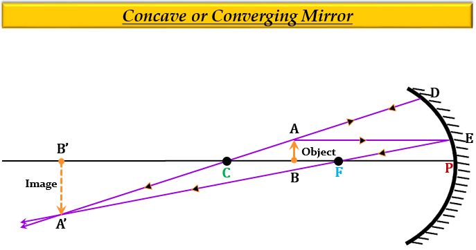 (a) 光路圖 - 展示當物體放置在凹面鏡的主焦點外側時,影像是如何形成的。
