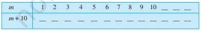 (a) 完成表格,並透過觀察表格找到方程\( m+10=16 \)的解
