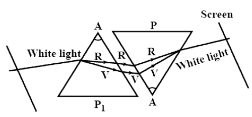 (c) 白光透過兩個相同稜鏡時的完整路徑如下所示