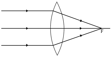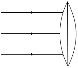 (a) 這是一個凸透鏡。平行光線會在一個稱為透鏡焦點的點上會聚。
