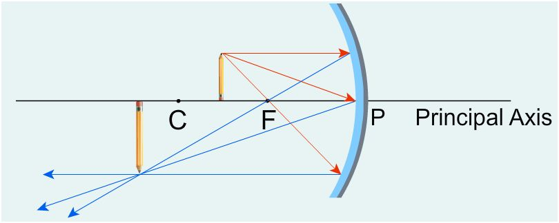 焦距為'f'的凹面鏡可以形成物體放大的正立像和倒立像。