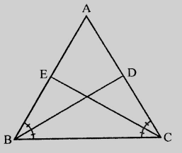 BD和CE分別是等腰三角形ABC中∠B和∠C的角平分線,其中AB = AC。