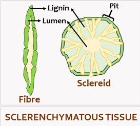 厚壁細胞是細長的、死亡的細胞,其細胞壁中含有木質素沉積。它們之間沒有細胞間隙。它存在於種子和堅果的外皮、莖的維管組織周圍以及葉脈中。其主要功能是增強植物的強度。