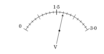 請觀察圖示中電壓表的刻度,並回答以下問題:
