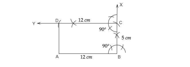 5. 以點C為圓心,以12釐米為半徑畫弧,與YC相交於點D。