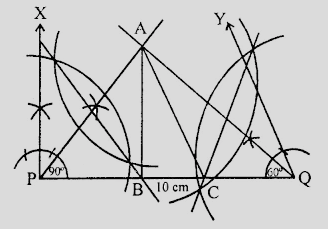 (ii) 在$P$點,畫一條射線$PX$,使其與$PQ$成$90^o$角;在$Q$點,畫一條射線$QY$,使其與$PQ$成$60^o$角。