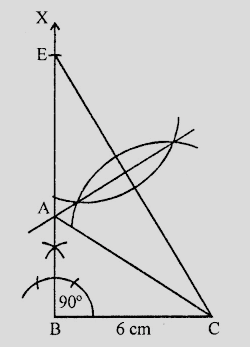 (ii) 在B點,畫一條射線BX,使其與BC成90°角,並在BX上擷取BE = 10釐米。