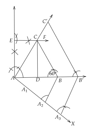 (viii) 從A₃點,畫一條與A₂B平行的線A₃B′,以及一條與BC平行的線B′C′。
